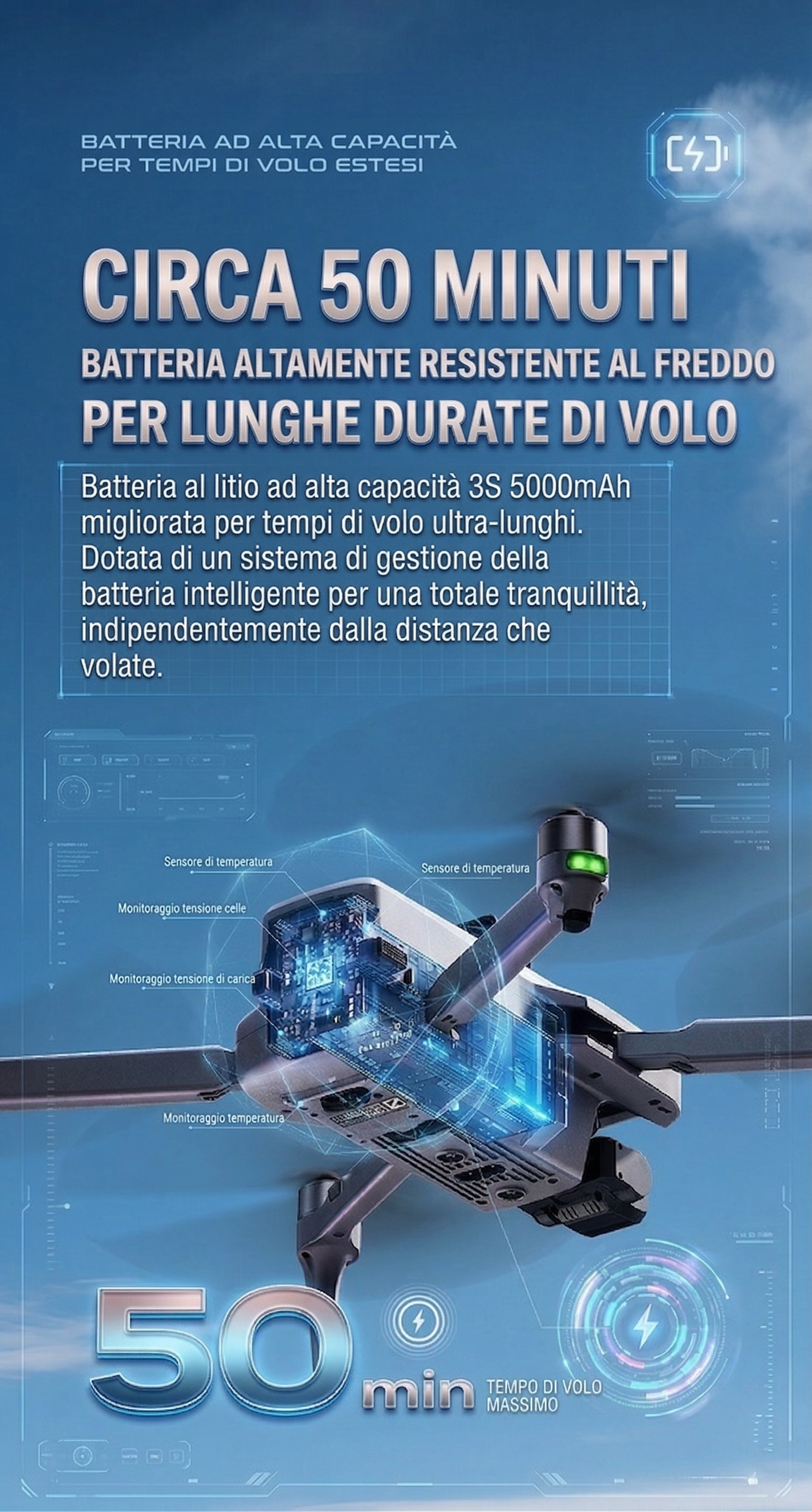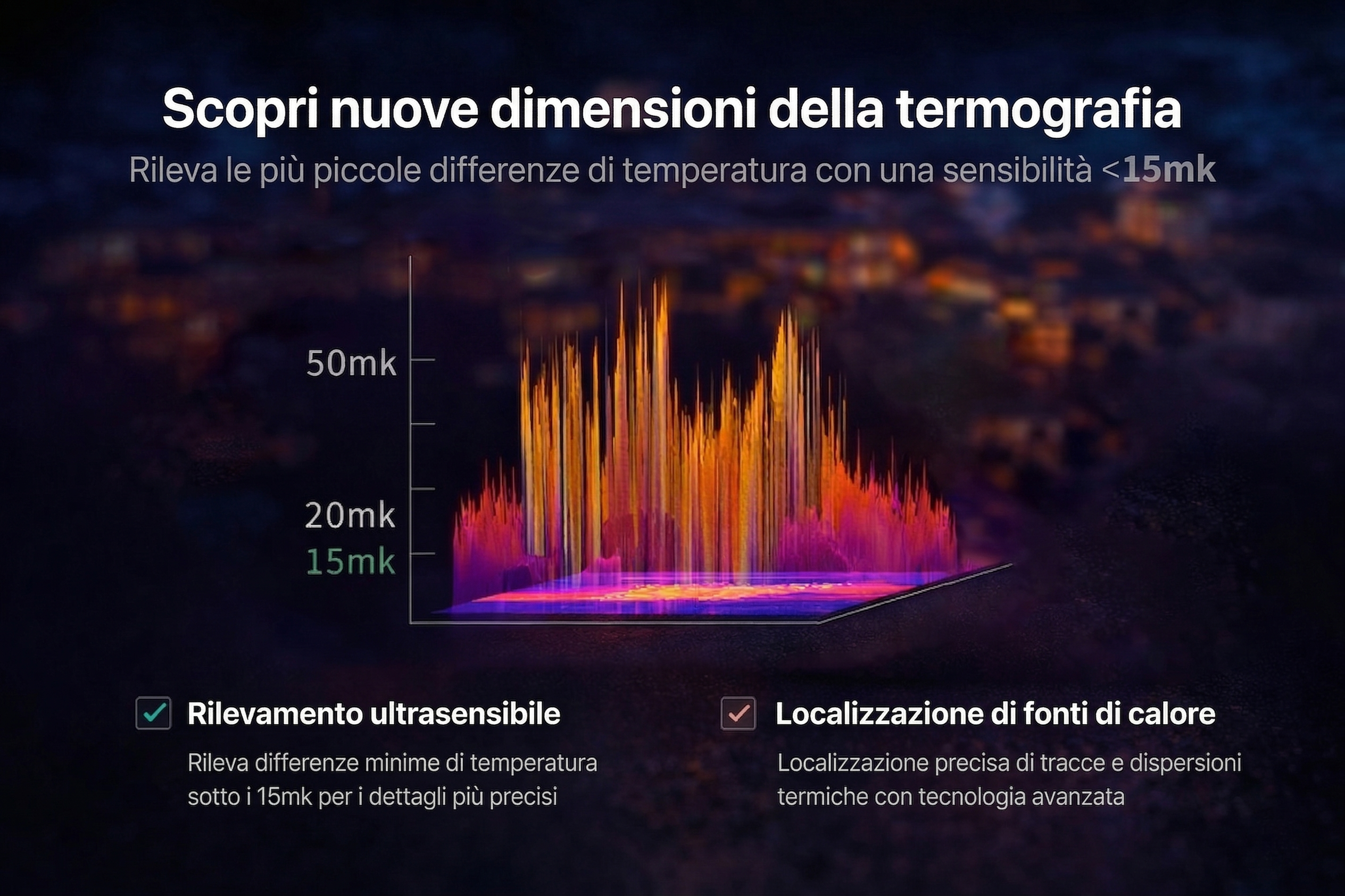 Dotato di un sensore termico integrato con risoluzione ultra elevata 1280×1024 e un tempo di volo estremamente lungo di 50 minuti.