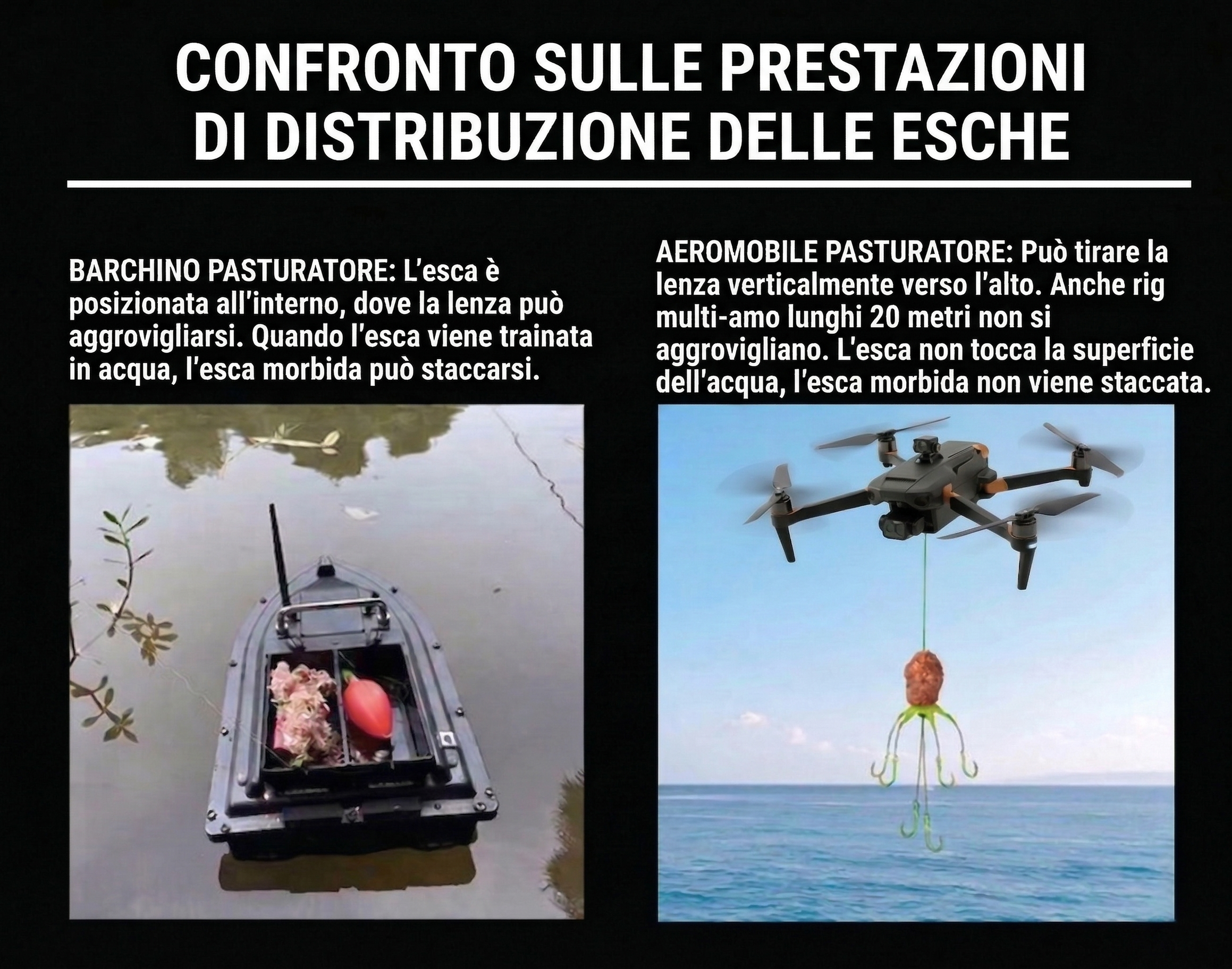 Rilascio preciso delle esche su lunghe distanze