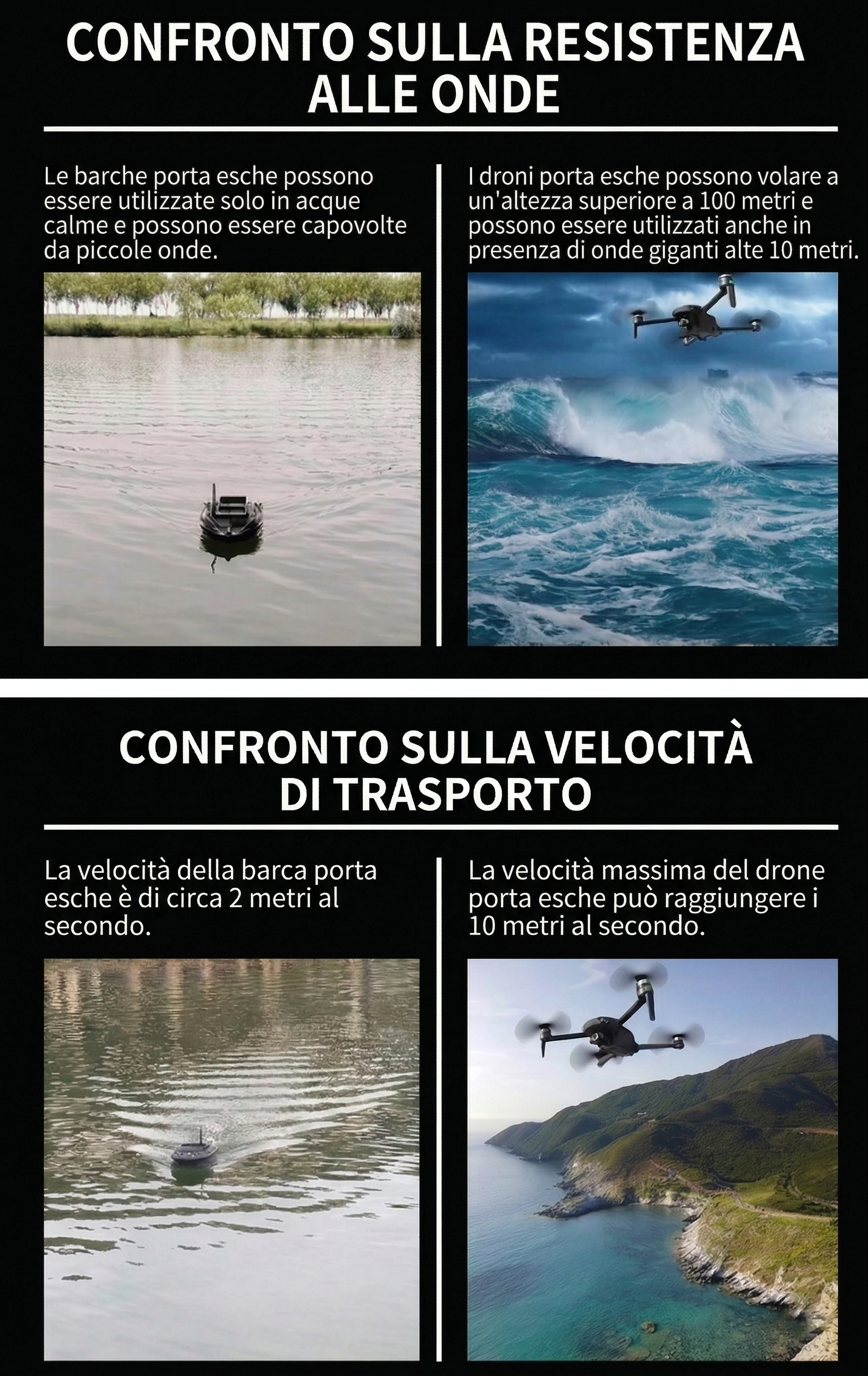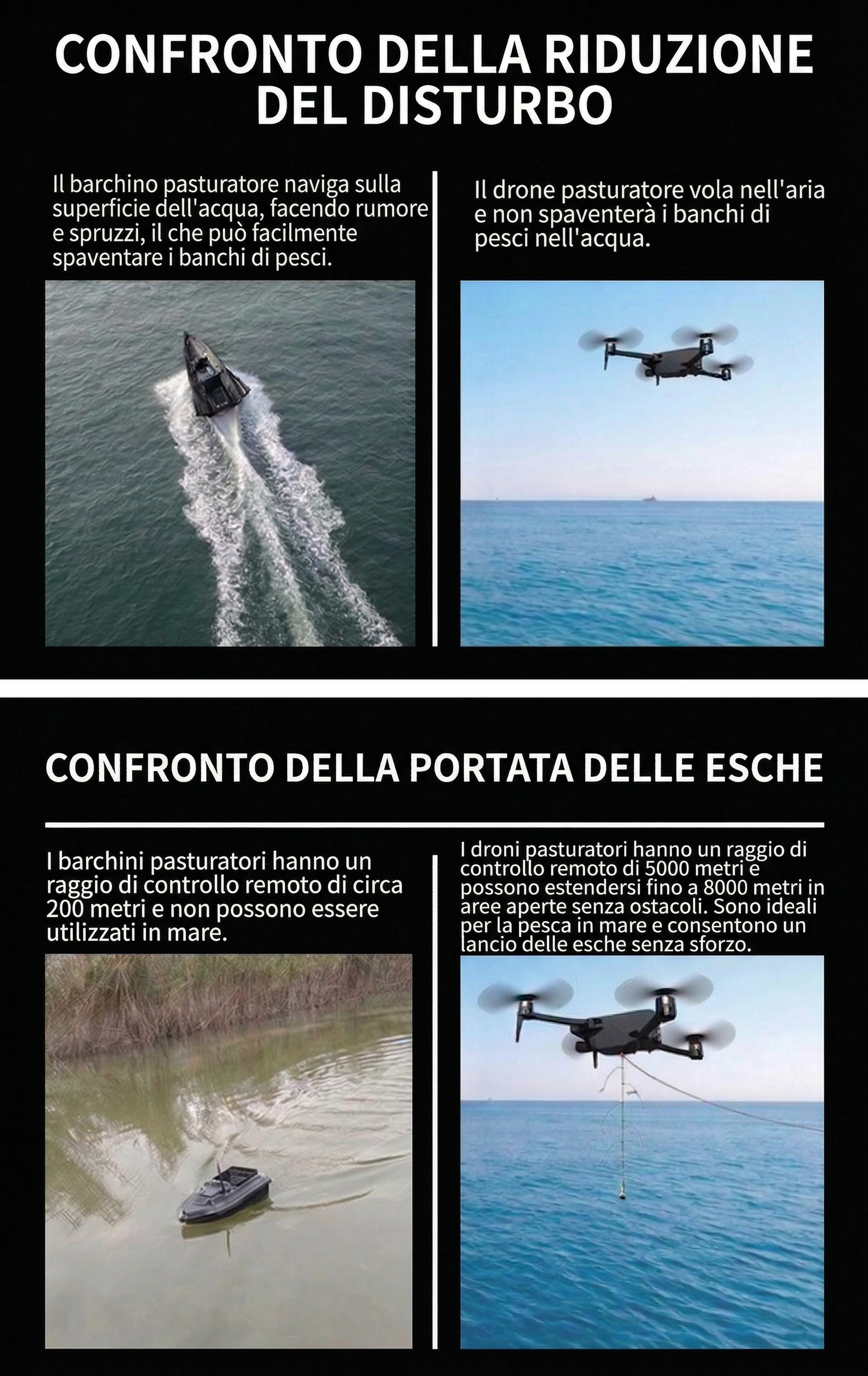 👉 Smetti di affidarti alla forza del lancio e alla fortuna — grazie a una capacità di carico fino a 20 kg per il trasporto delle esche, puoi portare tutto in un solo volo e posizionare con precisione più punti di esca. L’efficienza raddoppia immediatamente.